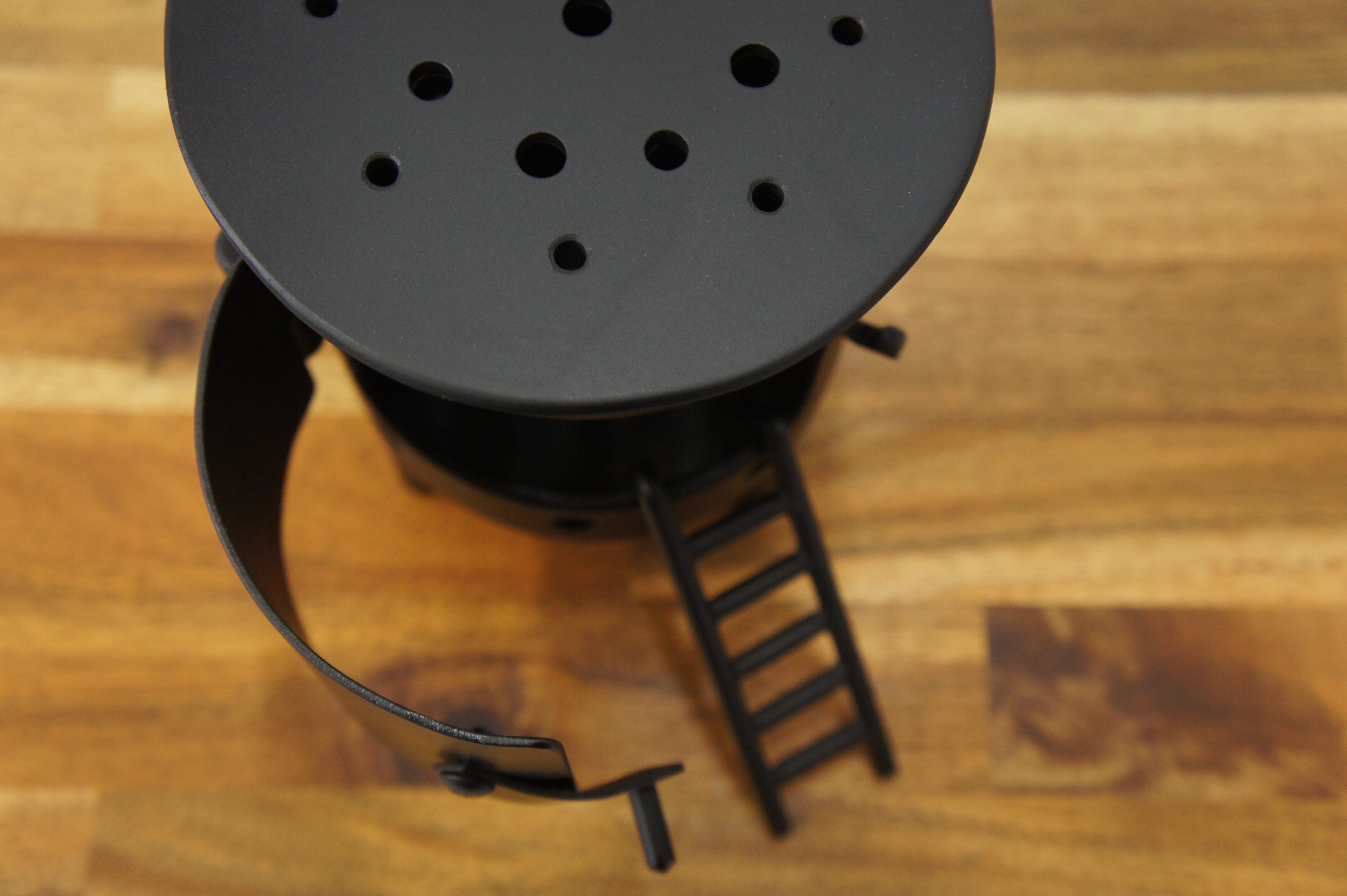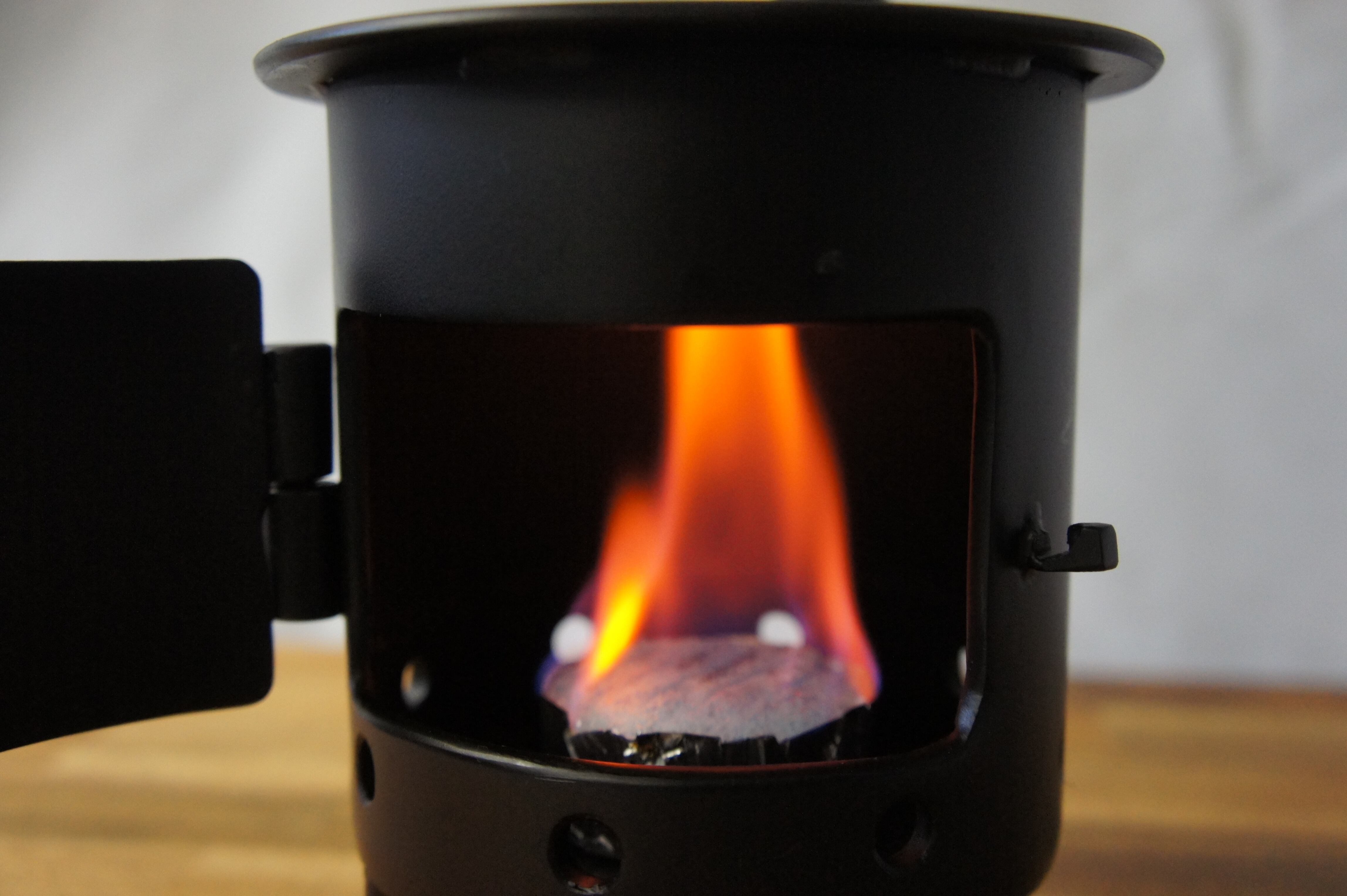 手作り感あふれるミニ薪ストーブ型コンロです。